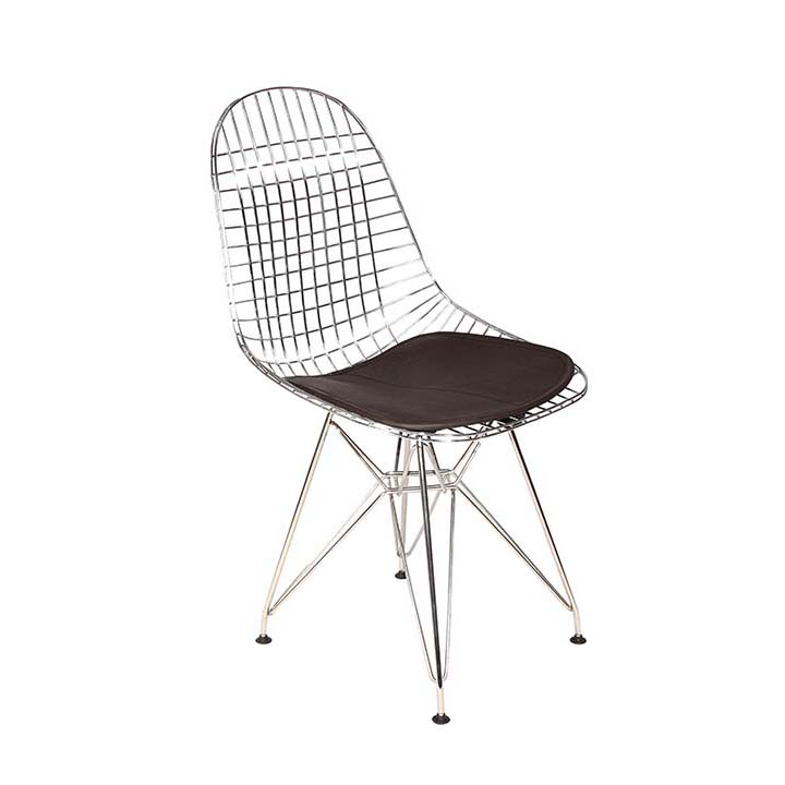 エッフェル ダイニング サイドチェアは、頑丈なクロム鋼フレーム、クロムワイヤーベース、PU シートパッドが特徴です。